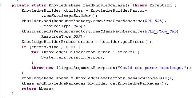 kbase.addKnowledgePackages(kbuilder.getKnowledgePackages());
